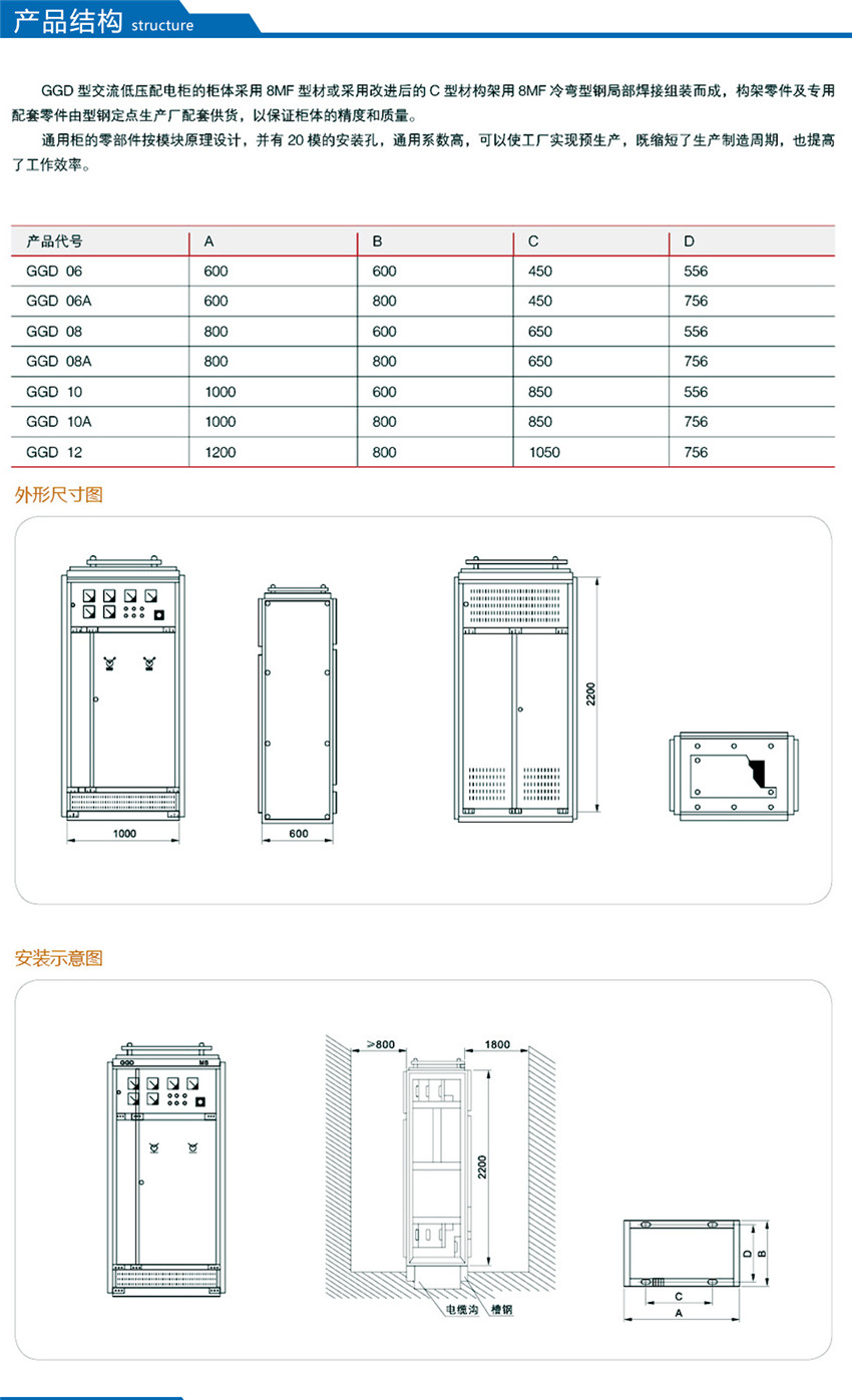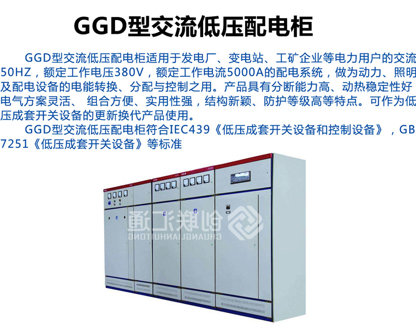 GGD型交流低壓配電柜是根據(jù)能源部主管上級(jí),廣大電力用戶及設(shè)計(jì)部門(mén)的要求,本著安全、經(jīng)濟(jì)、合理、可靠的原則設(shè)計(jì)的新型配電柜。產(chǎn)品具有分?jǐn)嗄芰Ω撸瑒?dòng)熱穩(wěn)定性好,電氣方案靈活、組合方便,系列性、實(shí)用性強(qiáng),結(jié)構(gòu)新穎、防護(hù)等級(jí)高等特點(diǎn),可以作低壓成套開(kāi)關(guān)設(shè)備的更新?lián)Q代產(chǎn)品使用。并且廣泛適用于發(fā)電廠、變電所、工業(yè)企業(yè)等電力用戶作為交流50HZ,額定工作電壓380V,額定電流至3150A 的配電系統(tǒng)中作為動(dòng)力,照明及配電設(shè)備的電能轉(zhuǎn)換、分配與控制之用。該產(chǎn)品分?jǐn)嗄芰Ω?,額定短結(jié)構(gòu)新穎等特點(diǎn)。該產(chǎn)品是我組裝式、固定面板開(kāi)關(guān)柜的代表產(chǎn)品之一。