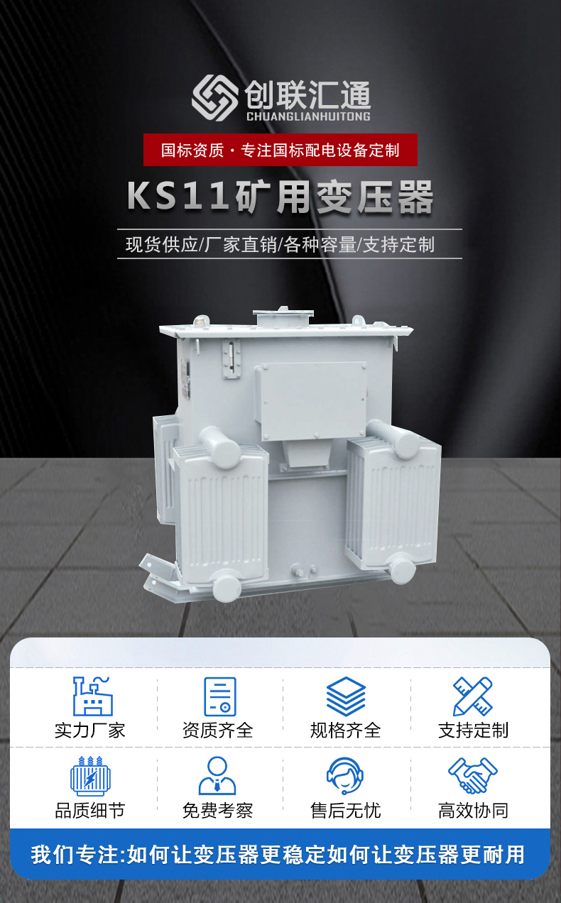 KS11系列10KV礦用變壓器KS11系列礦用變壓器,作為礦并的配電設(shè)備.該產(chǎn)品具有體積小,易下并,結(jié)構(gòu)合理、損耗低.教熱性能好等特點(diǎn)。本系列產(chǎn)品采用優(yōu)質(zhì)的晶粒取向優(yōu)質(zhì)高導(dǎo)磁性能硅鋼片疊裝而成,鐵芯為芯式鐵芯,全斜接縫迭積式鐵芯,其鐵芯柱為多級(jí)圓截面,確保低噪音低損耗油箱結(jié)構(gòu)堅(jiān)固,箱壁兩側(cè)焊有高、低壓電纜接線盒,作為電纜接線之用,高壓線圈須有額定電壓士5 %的分接電壓,利用分接開(kāi)關(guān)變換電壓變換電壓時(shí).必須先切斷電源,然后去除箱壁上分接開(kāi)關(guān)的風(fēng)雨雙進(jìn)行變換電壓變壓器低壓側(cè)允許"Y” 型接成693V或”D”型接成400V供電,在電纜接線盒內(nèi)直接裝次級(jí)端頭引出六個(gè)瓷套供用戶(hù)改接變壓器吊裝利用焊在箱壁的吊攀,變壓器箱底均裝有拖撬,在拖撬上備有安裝孔,可供礦并需要時(shí)加裝礦車(chē)滾輪。