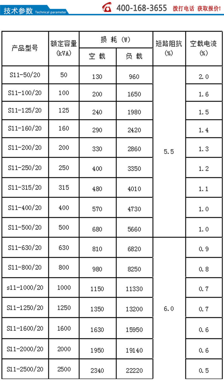 S11系列產(chǎn)品在S9系列的基礎(chǔ)上,空載損耗平均降低了30%;空載電流比S9下降70-85%;平均溫升降低10K,產(chǎn)品使用壽命增加一倍多,即使在超負(fù)載20%的條件下仍可長期運(yùn)行;產(chǎn)品運(yùn)行噪音平均降低2-4分貝。